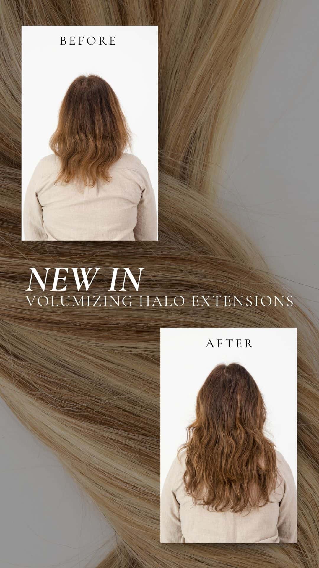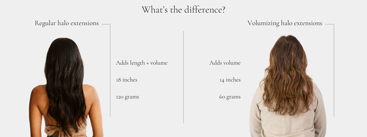 Volumizing halos are a shorter, lighter version than our full halo hair extensions. This is one weft that fits ear-to-ear, acting as a convenient and comfortable way to add instant volume to your hair in a non-permanent and non-damaging way.